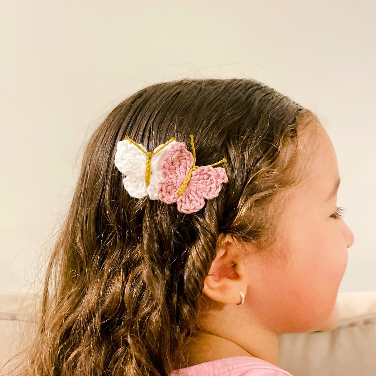 Nossos clips são fabricados com muito amor. As borboletas são feitas no crochê! Ele é indicado assim que o bebê/criança tiver cabelo suficiente.