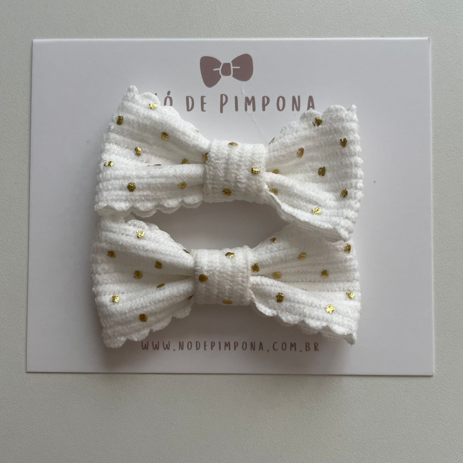 Dupla de Laços de Tecido Algodão- Branco e Dourado