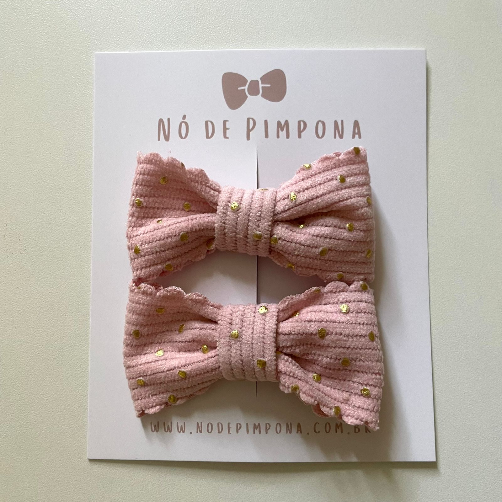 Dupla de Laços de Tecido Algodão- Rosa e Dourado