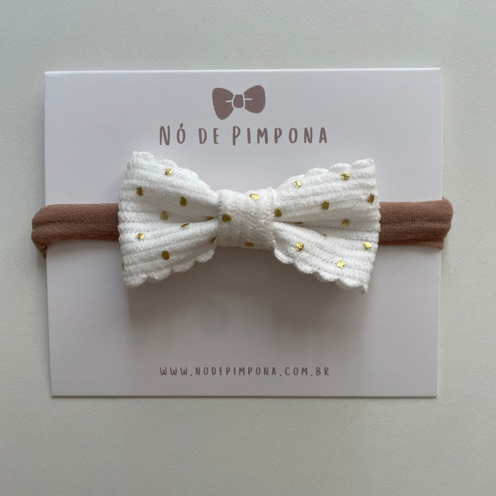 Faixa de Bebê Laço Algodão - Branco e Dourado