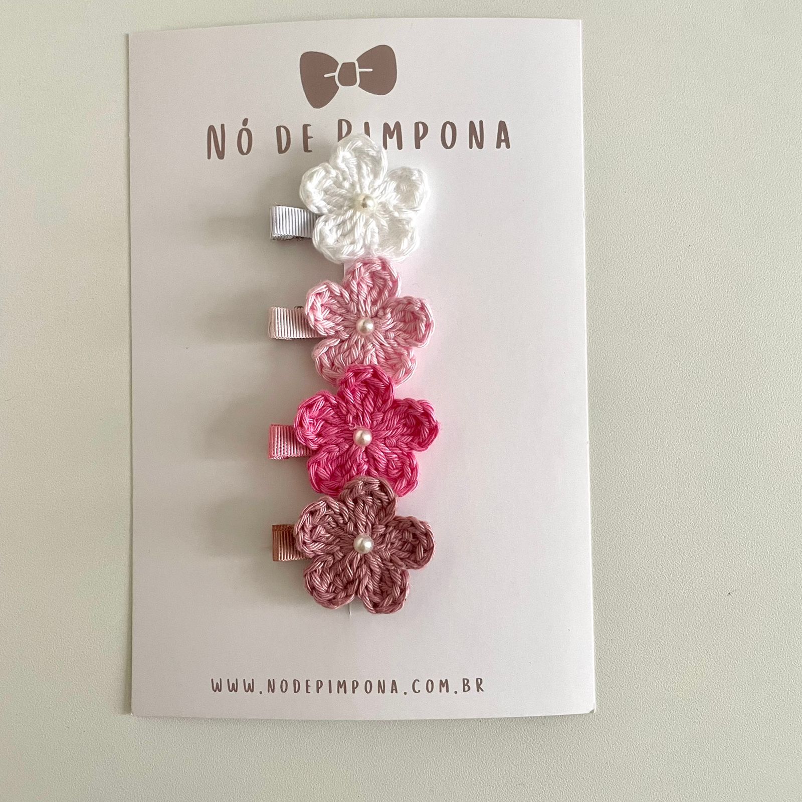 Kit Clips de Flor de Crochê - Branco, Rosa, Pink e Rose