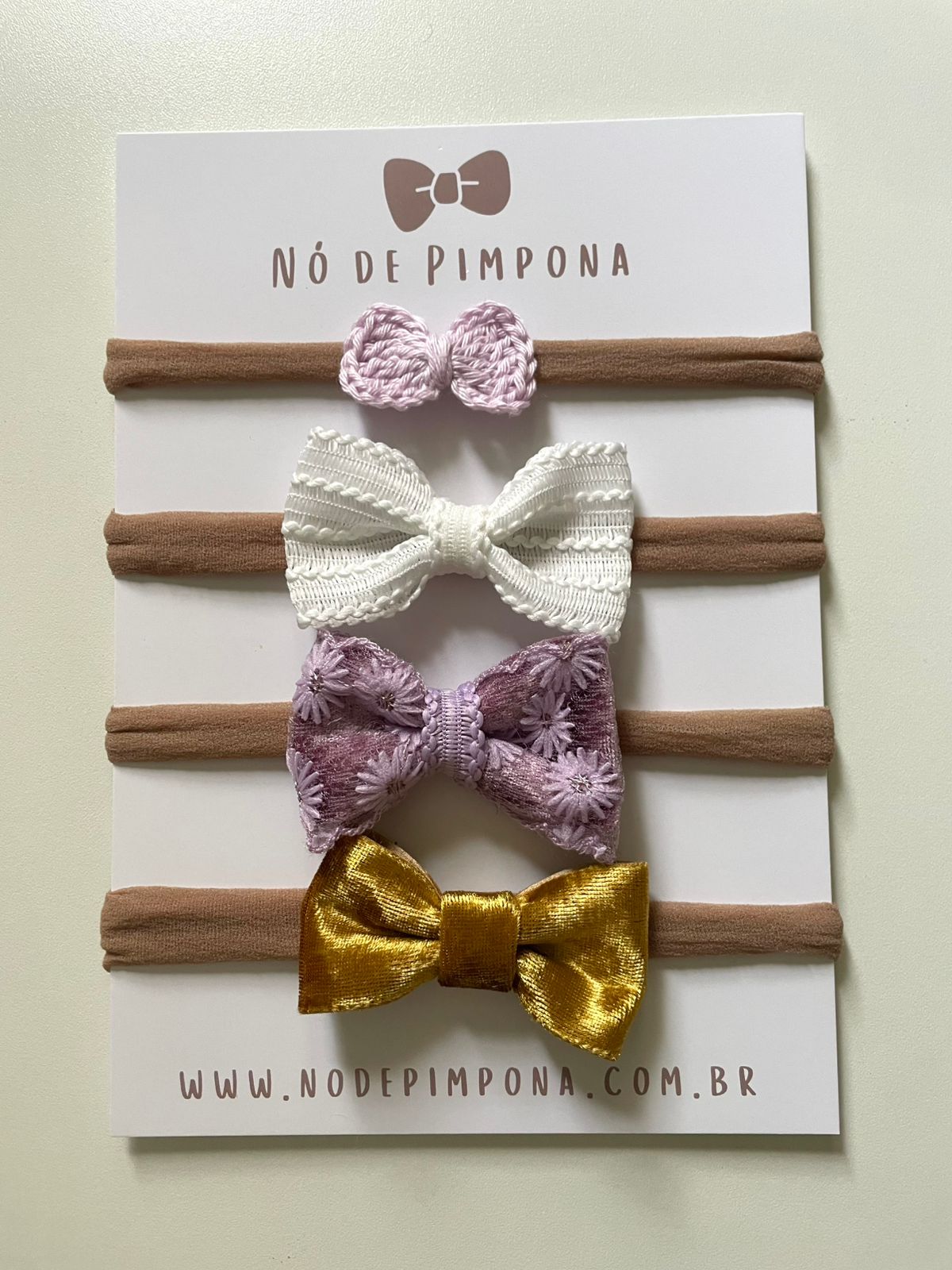 Kit Faixa de Bebê Laços - Lilás Floral (4unidades)